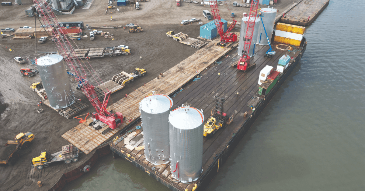 The new vertical method also improved loading and discharging cycle times at both ports. "Jon Satre and the AML team assisted in pre-rigging the tanks in the fabricator’s yard prior to loading at Anacortes to further speed up the loading process," Tom says. "The advance planning, engagement and idea sharing greatly benefited the project. It was a seamless move from end to end."